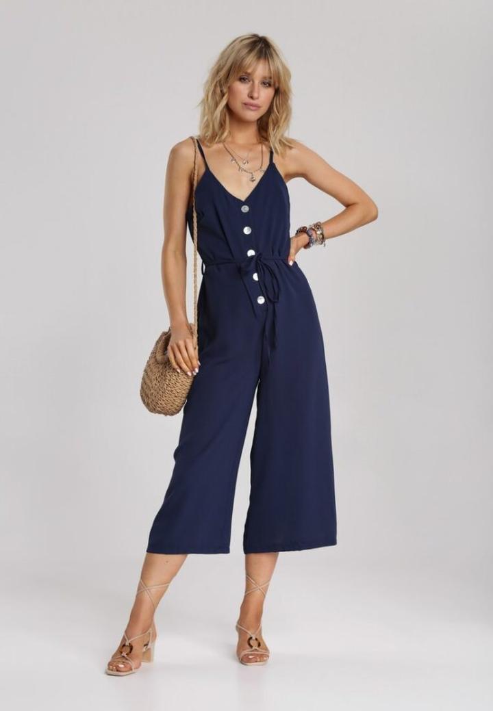 Tak, odcienie butów mają ogromne znaczenie. Jasny, stonowany niebieski kombinezon dobrze wygląda z pastelowymi sandałami, a granatowy z butami w kolorze złotym lub srebrnym, które dodają stylizacji błysku.