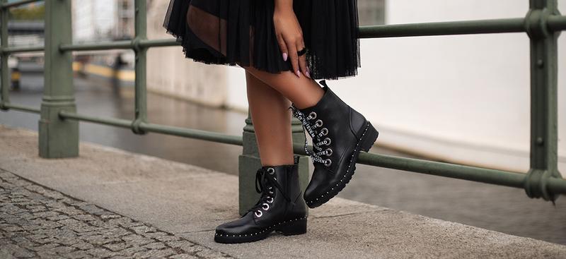 Rockowy styl Botki w stylu „glany” Dodają pazura i świetnie komponują się z czarną sukienką.