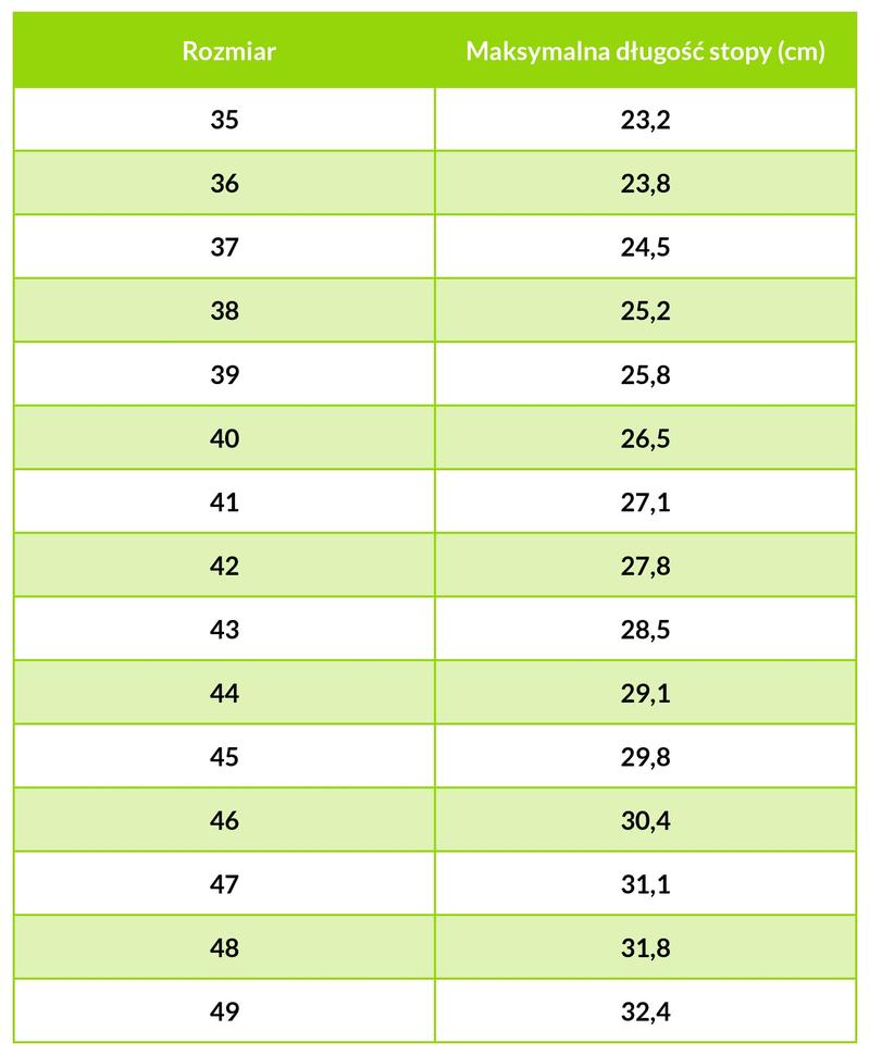 | Różnice w rozmiarówkach | Uwaga na różnice między europejską a amerykańską rozmiarówką. Zapoznaj się z tabelami rozmiarów producentów. |