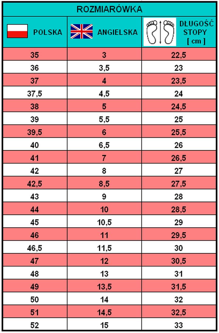 • Rozmiar 11.5 UK odpowiada rozmiarowi 12 w systemie US oraz 46 w systemie EU.
